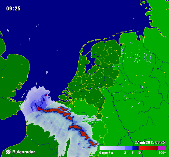 Er hangt wat in de lucht... Buienradar laat een flink onweersgebied richting noorden zien!