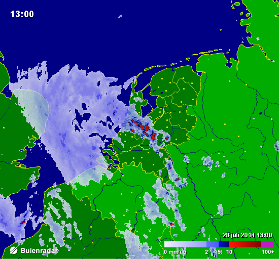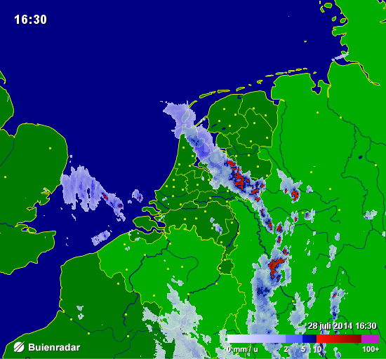 We hebben de afgelopen weken regelmatig pittige buien, met gisteren zondvloed in o.a. Alphen aan de Rijn en Amsterdam en nu in Limburg.