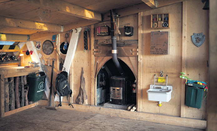 Houten panelen kreeg hij via vrienden in Rotterdam die het decor gingen afbreken van een festival, de houtkachel kreeg hij van een andere vriend die vond dat hij er wel warmpjes bij moest zitten, de glazen pui realiseerde hij door de kozijnen uit de vuilcontainer te halen bij een verzorgingshuis vlakbij, waar ze bezig waren met groot onderhoud. En toen hij achter in de tuin van zijn buren een uitgegraven en achtergelaten vijverbak vond, maakte hij onder de vloer van zijn woonkamer een zitkuil en (zwem)bad. Of het allemaal aan de veiligheidsvoorschriften voldoet, weet Victor niet, maar zijn villa heeft inmiddels menig storm overleefd.